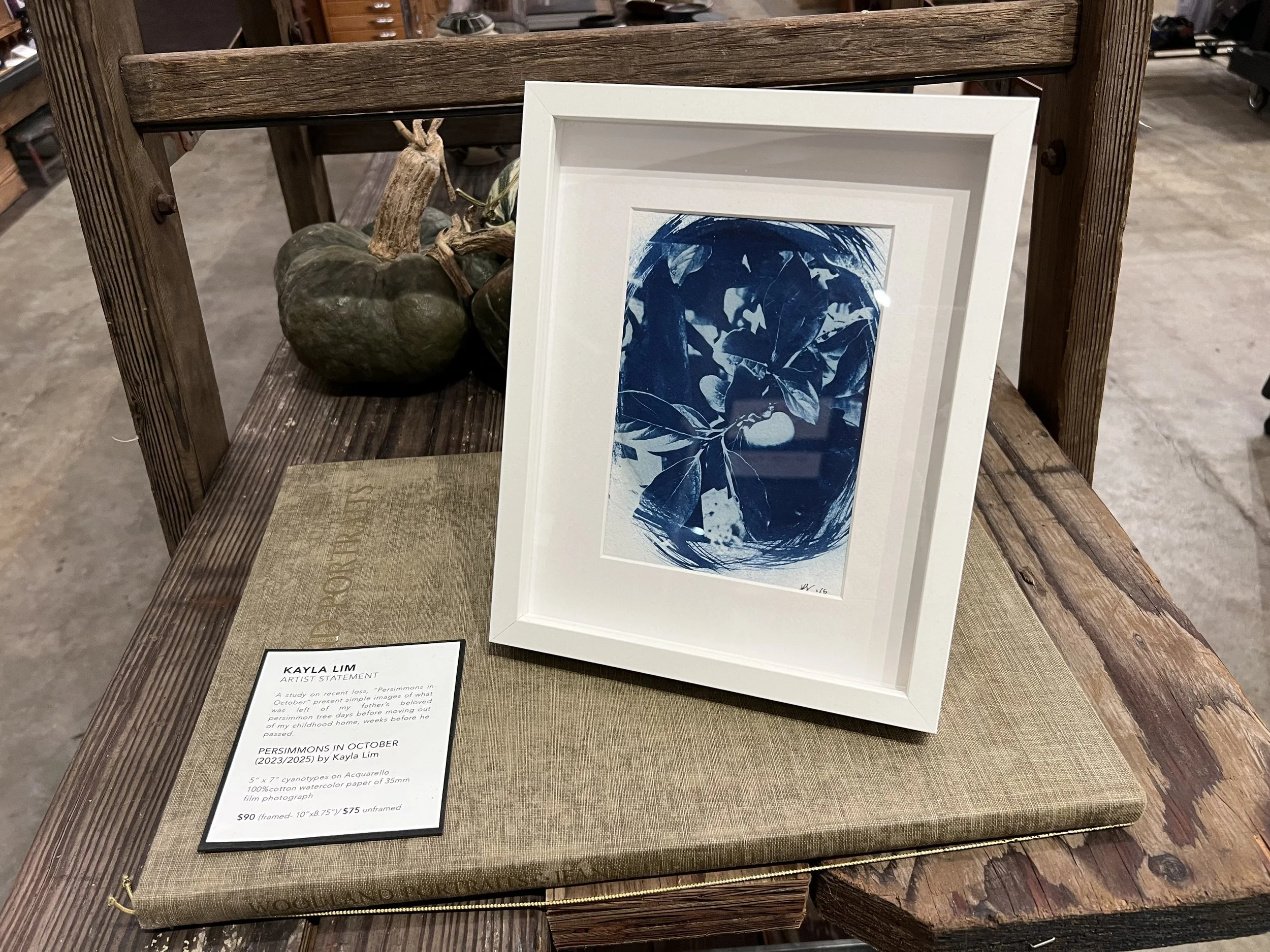 A study on recent loss, “Persimmons in October” present simple images of what was left of my father’s beloved persimmon tree days before moving out of my childhood home, weeks before he passed.