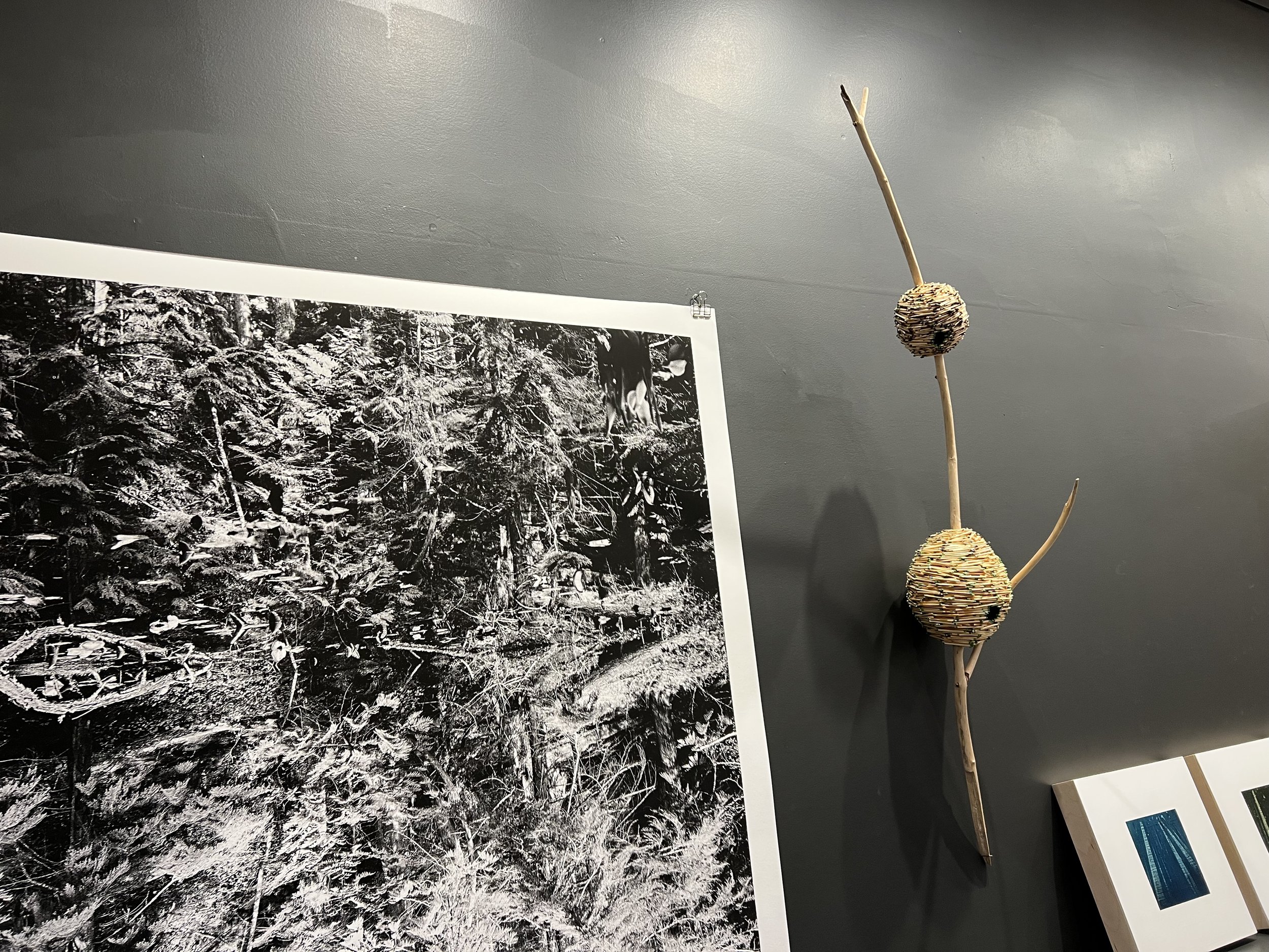 Kayla Lim photography, Karen Hackenberg matchstick sculpture; Lesley Frenz paintings; other artists in the show include sculptures by Jennifer Fernandez and art videos by Brenden Emery