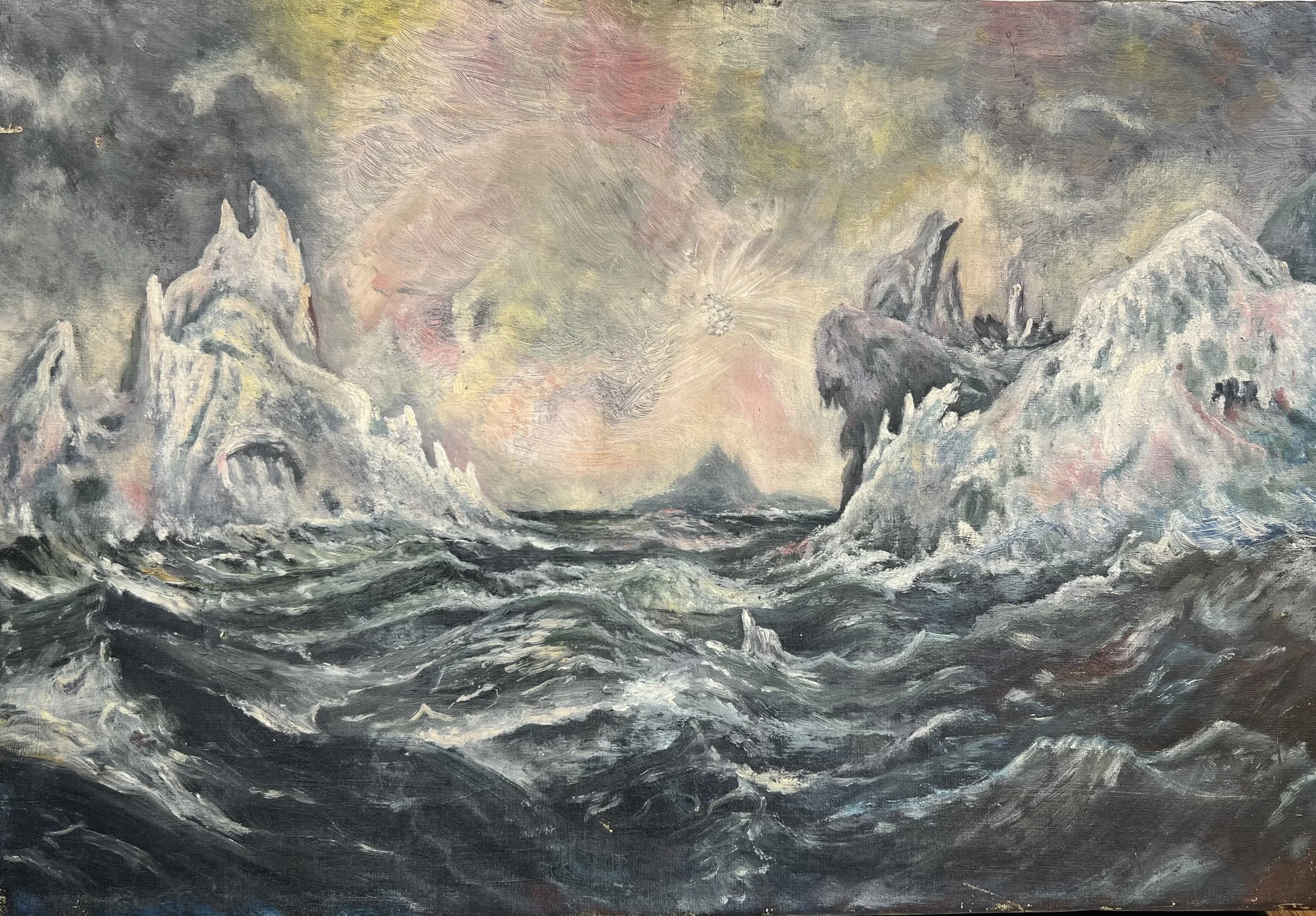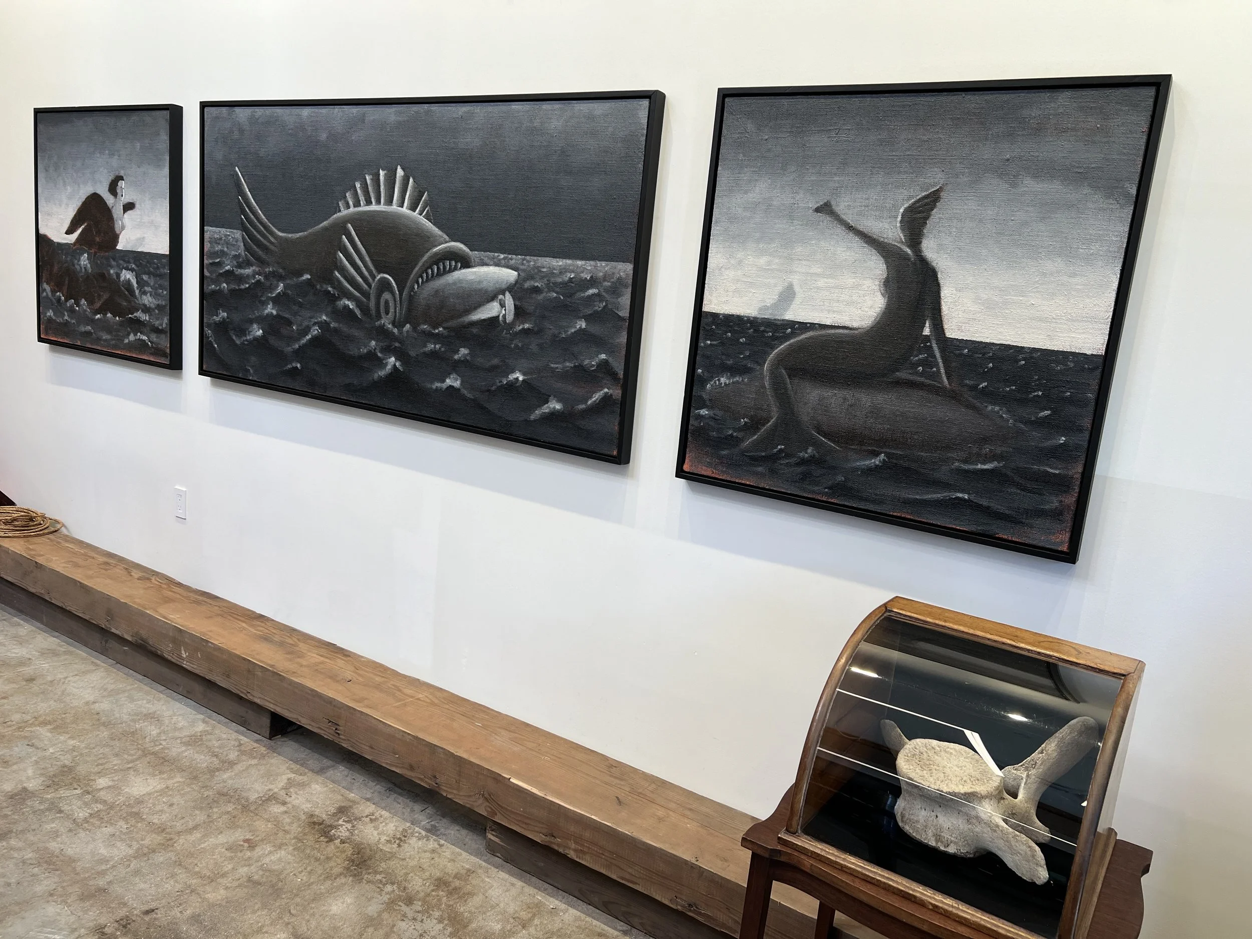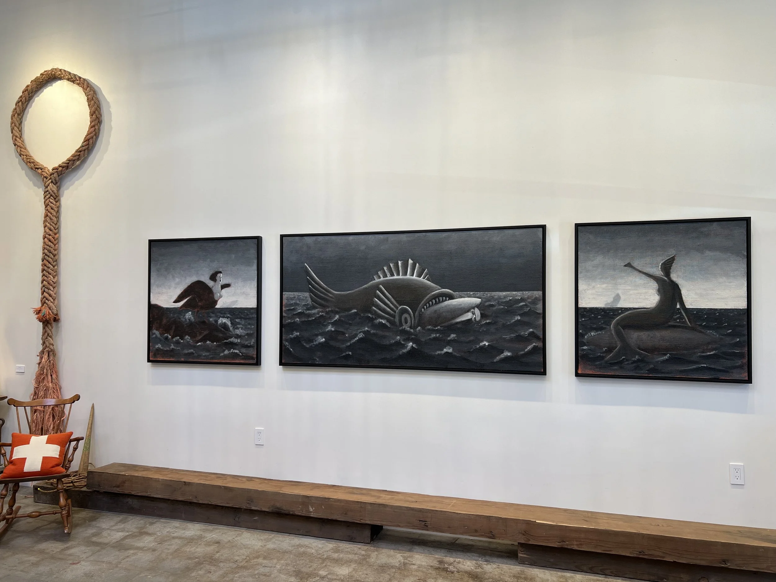 Left: Found painting/ Middle: San Juan Island scene water color by Christine Chaney/ Right: Night Seascape Paintings by Jane Kidder